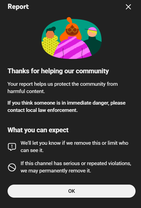 This can work well when the video is obviously breaking YouTube’s rules. Where it usually struggles is with content that is rude, biased, or unfair, but framed as “opinion.” In those gray areas, YouTube often leaves the video up, even if it feels deeply damaging to you.