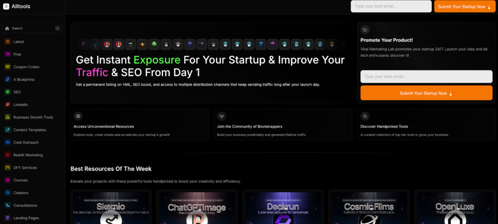 Viral Marketing Lab is built around a real startup problem: great products losing simply because nobody notices them. Their angle is straightforward: viral growth is a method. They back that up with growth blueprints, curated tools, and viral content strategies that are designed for small teams trying to scale without wasting cycles. It also feels founder-led, not faceless.