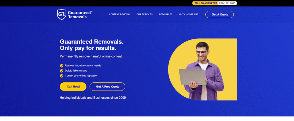 Guaranteed Removals keeps the model simple. You pay only if they successfully remove the targeted content. There is usually no long-term SEO, branding, or content strategy involved. The focus is very specific: takedowns.