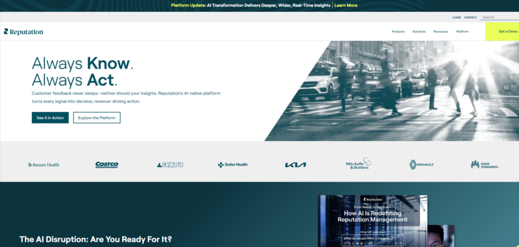 Reputation.com is more of a platform than a traditional consulting firm. Large enterprises, especially in healthcare, retail, automotive, and education, use it to manage reviews, surveys, and reputation data at scale.